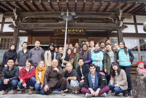 2015年度後期の交換留学生と日本人学生が、11月21日〜22日にかけて1泊2日の禅体験合宿に参加しました!この合宿は日本文化の理解を深める目的で、2014年から始まり今回で4回目になります。岐阜県恵那市にある曹洞宗林昌寺さんのご協力のもと、坐禅・写経体験を行い、夜はみんなで銭湯、紅葉ライトアップを見に行ったりと、盛り沢山の内容でした。