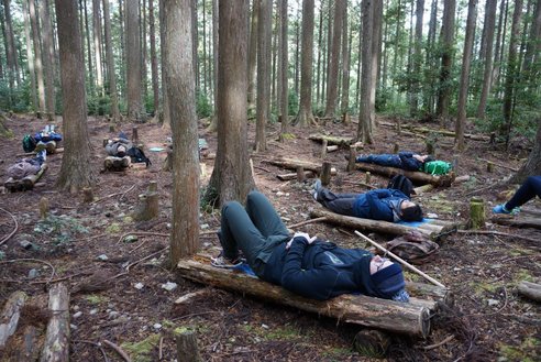 道端にある名前のない地蔵に拝んだり、ウッドベッドに横になり熊野の自然を感じたりと、古道を実際に歩き経験することで、自然と宗教が調和する日本文化への理解を一層と深めることができました。