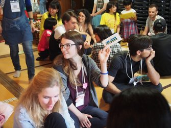 午後には、山岡町の英語ボランティアの方々に郷土料理の朴葉寿司の作り方を習い、一緒に昼食としていただきました。地元の子供達からは手作りの国旗とレイを受け取り、一緒にカルタ取りを行いました。町民の皆様に暖かくおもてなしをしていただき、留学生も大変感動しておりました。