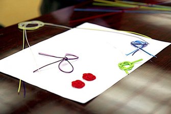 イベントの前半は、日本の伝統文化における結び目の象徴と歴史を学びました。水引について詳しく知らない留学生は、結び目一つ一つに意味があることにとても感心している様子でした。イベントの後半は、日本人学生の団体CESA(日本人学生と留学生との交流を促す団体)のメンバーと一緒にさまざまな種類の結び目を作りました。