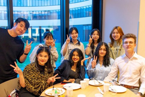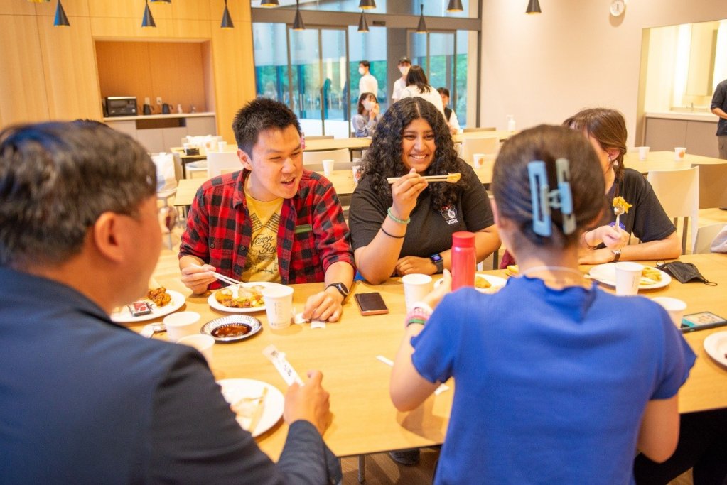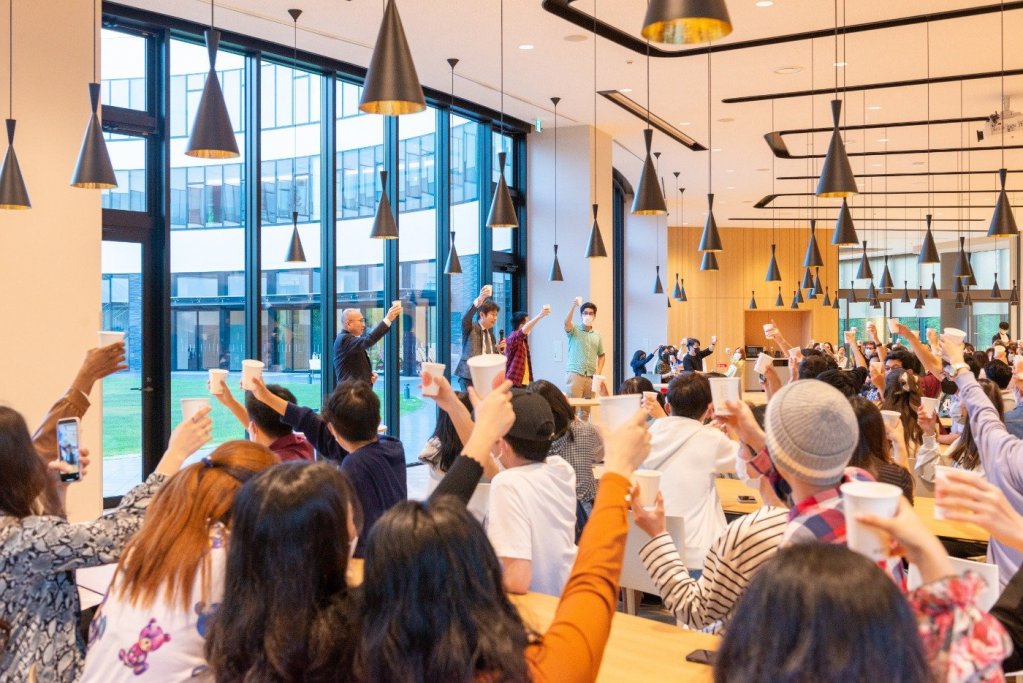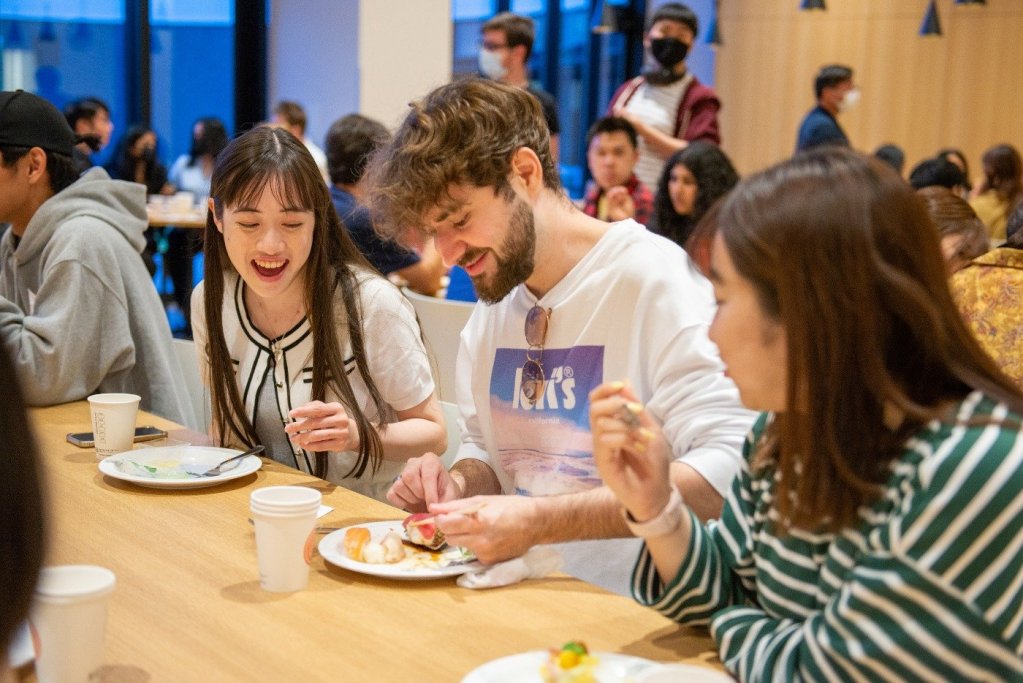 2022年4月に新設された国際寮のダイニングルームにおいて、5月11日(水)留学生ウェルカムパーティーを開催しました。本学では、2022年度前期に24ヵ国70名の留学生を新たに迎え入れたことにより、現在在籍する留学生数は計37ヵ国193名となり、今後学内での国際交流がさらに活発になることが期待されます。