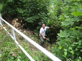 内容は観光客が街の風景が見えるように、木の切取り作業と、フェンスのペンキ塗りの作業でした。