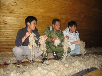 1週目の仕事が始まりました。内容は羊の毛洗いと、昔ハンター達が使われていた古い小屋の中のペンキ塗りの作業でした。