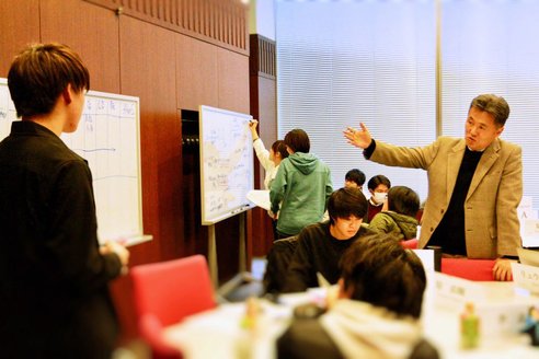 井坂 智博先生の「デザイン思考とイノベーション」では1年次に履修した授業「デザイン思考」をベースに、直感を頼りに問題を定義して意思決定する力をアクティブラーニングで体得していきます。