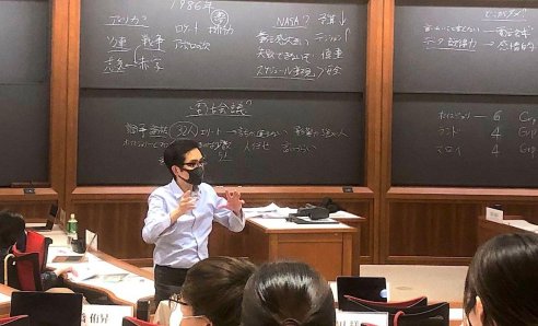 学生がケースの登場人物になりきってスペースシャトルを打ち上げるか、止めるかを模擬会議で話し合っていきました(ロールプレイ)。打ち上げるか、止めるかの選択は自由ですが、相手を説得しなければいけません。相手を説得するためにはどう行動すれば良いのか、学生達は実演しながら感じていきます。今回のケースでは、「組織」は目的達成のためにはどのように動くべきなのかを学んでいきます。利益やプライドがからんだ組織の意思決定がどのような結果に陥りやすいのか、現代社会でもよく報道されています。利益と倫理のバランスはどこにあるのかを、学生たちは授業を重ねるごとに理解を深めています。