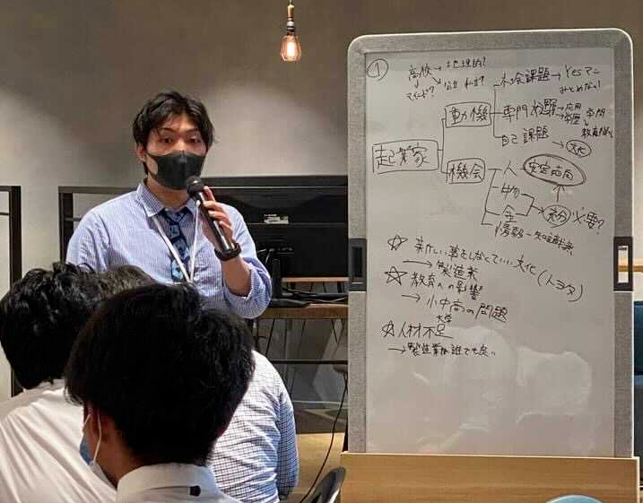 学生たちは、中部圏から起業家の創出が少ないのは、やはり根強い製造業文化が理由ではないか、いまの日本の教育は起業を考えさせていないのが理由ではないか、と考えていました。自分たちが考えた現状からこのイノベーターズガレージの活用アイデアとして、「起業家のための出資金をこの施設が運営する」、「幼い頃から起業の意識を持ってもらうため、この施設を小学生に解放する」「大学と連携して、施設利用代の都度利用や学割を用意する」といった具体的な案が出てきました。