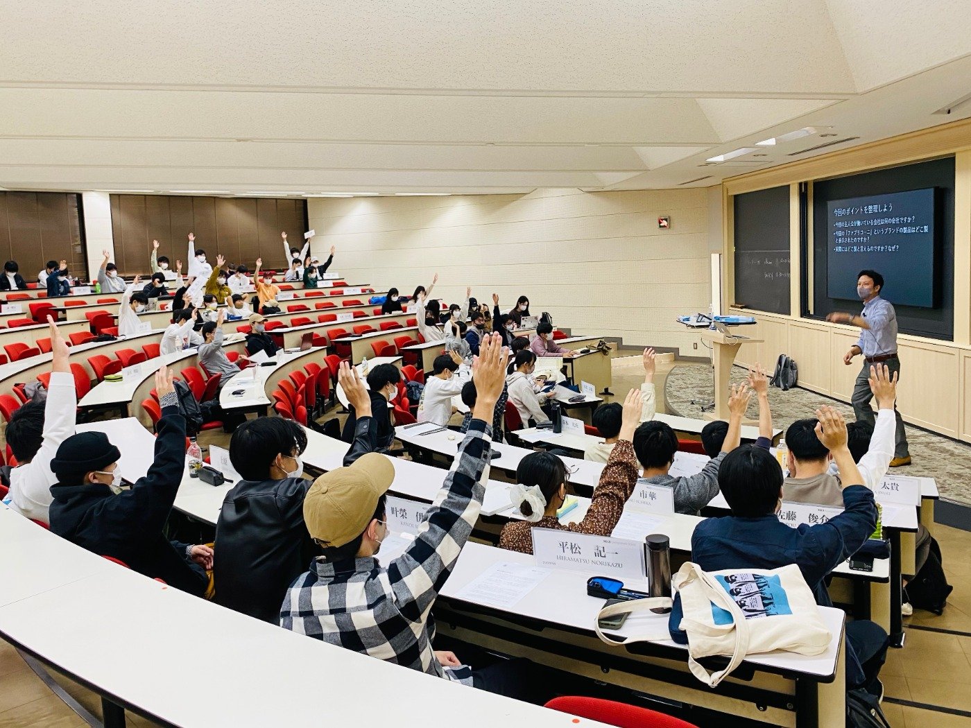 第6週の授業では、独占禁止法から派生した消費者を保護する法律「景品表示法」について学修。セレクトショップの原産国表示に関するケースを用いて議論を展開しました。