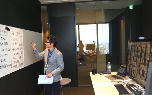 名古屋キャンパスの授業は20分間のグループディスカッションののちに、参加者全員で議論を行うクラスディスカッションに移ります。60〜70名程度で行われるクラスディスカッションの前のウオームアップとして、7〜8名程度の少人数でディスカッションをする時間が設けられています。学生たちはこの時間を使って、自分の意見がちゃんと相手に伝わっているのか等確認をしたり、他の学生の意見を通して自分の意見をブラッシュアップしていきます。
