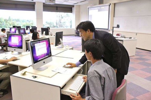 経営情報学科の体験授業では、実際にスマホ用のアプリを制作する実習を行いました。不慣れなパソコンでの作業に、参加者の皆さんは四苦八苦しながらも、実際にアプリができたときには歓声があがりました。