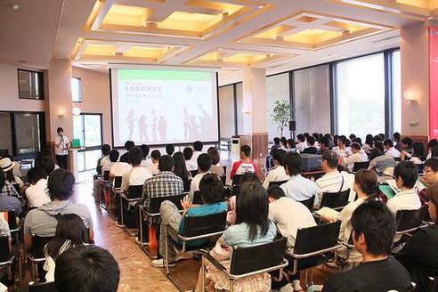 7/24(土)にオープンキャンパスが開催され、猛暑にもかかわらず多くの方に参加いただきました。まず、来場後はメイン会場のコミュニティパビリオン(学生食堂)1階へ、ここでは相談コーナーが設置され、下宿や学生寮のこと、学部、クラブ、入試のことなど、気軽に相談でき、「iPad体験コーナー」ではiPadを自由に触れていただきました。
