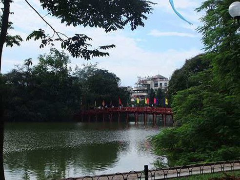 写真はホアンキエム湖という場所です。おだやかで、お散歩コースにはぴったりの場所です。