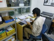 お仕事内容は、主に洋服のタグの計数、包装です。写真は1つの洋服で必要なタグを100枚ずつに数え小分けにします。他には出荷前の洋服のボタン閉めや、チャコペンの印を消す作業を行ったりします。