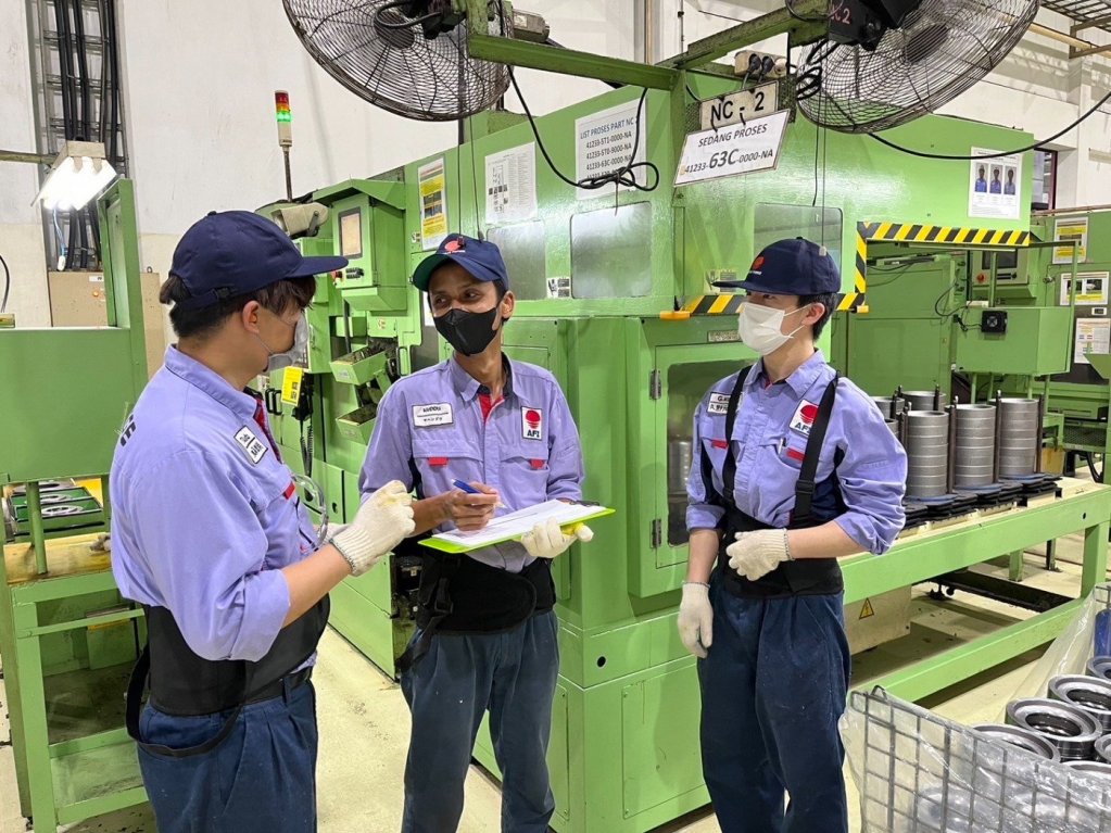 私はジャカルタから東の郊外へ位置するブカシ地域の工業団地にあるP.T. ASAHI FORGE INDONESIA様において、自動車部品などに使用する鍛造製品を製造する業務に挑戦しています。こちらの写真は、トリミングと呼ばれる作業のワンシーンですが、約1200℃まで熱した鉄を機械で叩き金型で成形し、製品の品質が一定水準以上か検査をしてベルトコンベアに移すという一連の作業を担当させていただきました。まだ3月とは言え赤道に近いインドネシアにおいて日中の気温は30度超、加えて機械熱や加熱した材料から放出される熱の影響で、体力や集中力は容赦なく奪われます。全工程の中でも初期段階なのでミスなく丁寧にやる必要があり責任もありますが、あらゆることに意識を高めて取り組むことができました。渡航前にはわからなかった製造メーカーの世界ですが、スタッフ同士が逐一コミュニケーションを取りながら、高水準な技術を製品に注ぎ込み、5Sや品質管理、在庫管理が工場内の隅々まで徹底して導入されている様子を学ぶことで、「ものづくり大国」としての日本の叡智が世界中に展開され、人々の暮らしにある商品・製品の根幹を支えているものを日々生産している現場という世界を身をもって体感することができました。
