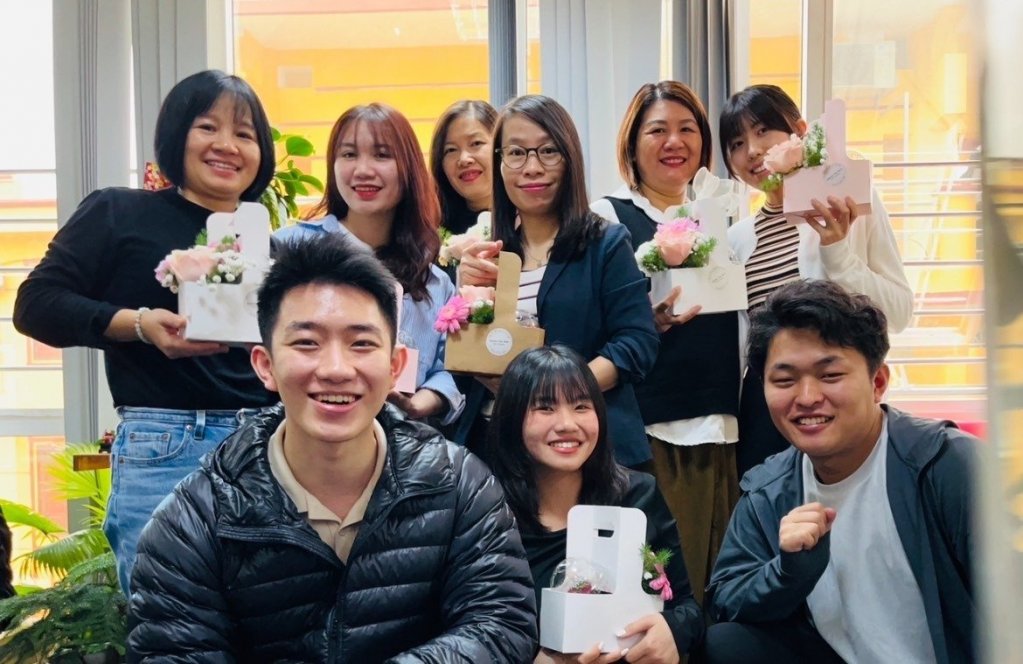 私はハノイにあるコンサルティング会社の教育事業部に所属し、インターン生として看護学校での模擬授業を実施しました。事前に同じ職場のベトナム人インターン生と当日の授業内容のリハーサルを入念に重ね、実際にベトナム人が苦手な発音を知り、授業ではその部分に注意しながら進めていこうと思いました。当日の模擬授業では、学生たちに飽きさせないように、特に言語の違いによるコミュニケーションの伝達に苦労しましたが、事前の準備と自信に支えられて、最終的には楽しく授業ができたと思います。また、授業後に上司からお褒めの言葉や、学生たちからの楽しいという声をいただき、非常に嬉しく感じました。また、後日この大学で交流会を行いましたが、学生たちが私が模擬授業で教えた自己紹介を上手に行えており、その成長を嬉しく思いました。交流会では、浴衣や習字を通して日本文化を体験しました。学生たちから「楽しかったです」「面白かったです」「次はいつ来ますか?」などのお言葉をいただき、学生たちが有意義な時間を過ごせたことが嬉しかったです。異なる文化や言語背景を持つ学生とのコミュニケーションを通して、柔軟性や配慮のあるコミュニケーションスタイルを身につけることができたと感じています。
