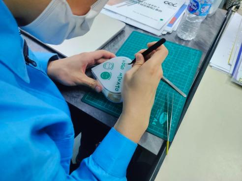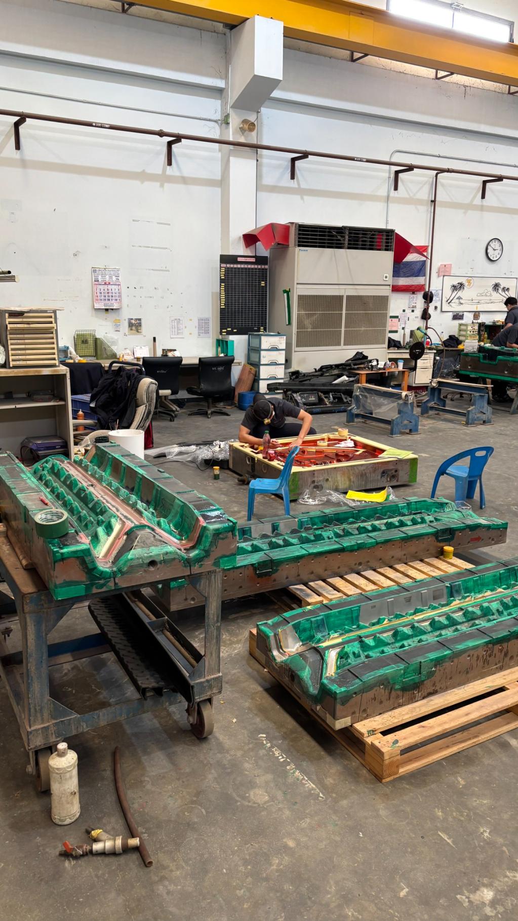 私はシラチャ郊外の工業団地にある自動車部品製造メーカー「SET」様で、三週間のインターンシップに来ています。この企業は自動車の内装パーツにおける「シボ加工・ブラスト加工」という特殊な加工を行う企業であり、多くの行程は手作業によって製品を製造し取引先の大手自動車メーカーに納品しています。熟練した技術者になるには最低10年はかかると教わり、インターンの実習の一環として私もシボやブラストの加工実習を行いました。実際に作業・加工するにあたって、精度やスピードが求められるので大変さを実感しました。実習の一例では、写真のようにプラスチックの箱に加工を施すのですが、カッティングの作業で細かいデザインがとても難しく、神経を研ぎ澄まさないとミスしてしまいます。更に集中するだけでなく丁寧さやテクニック、創意工夫なども求められます。自分は細かい部分が綺麗にカット出来ず現地従業員の方に手伝ってもらいましたが、繊細な作業でも迅速かつ丁寧で高精度な技術を目の当たりにしかっこいいと感じました。その際にこの方とも交流を深めることもできて楽しかったです。また、別の工程である製品へのマーキング作業も経験し、慣れてきた頃には取引先に送る製品のマーキングを実際に作業させてもらいました。事前に練習を繰り返し行ったので、自分なりに工夫した結果練習の時よりもかなり綺麗にできました。社員の方々にも綺麗だと言ってもらえたことと、自分が作業を施した物が実際に取引で使用されるということが嬉しかったです。