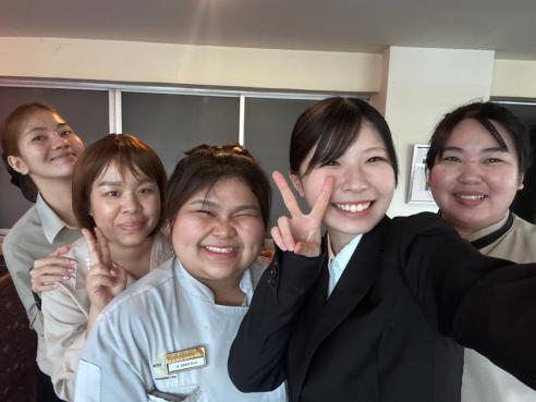 朝食の時間では、ホスピタリティのある対応を心がけます。このホテルの特徴として、年間契約で宿泊されている日本人の方や、シラチャ近郊にある多くの日系企業へ出張ベースで繰り返し滞在される方が多く、毎日来られる方の特徴をメモして雰囲気まで覚えることで、だんだんとその方に合わせた対応ができるようになりました。お客様がホテルに帰ってくる際も、私がフロント業務にあたっていることが多いため、「頑張っているね」と声を掛けて下さる方も増え、とても元気をもらえます。