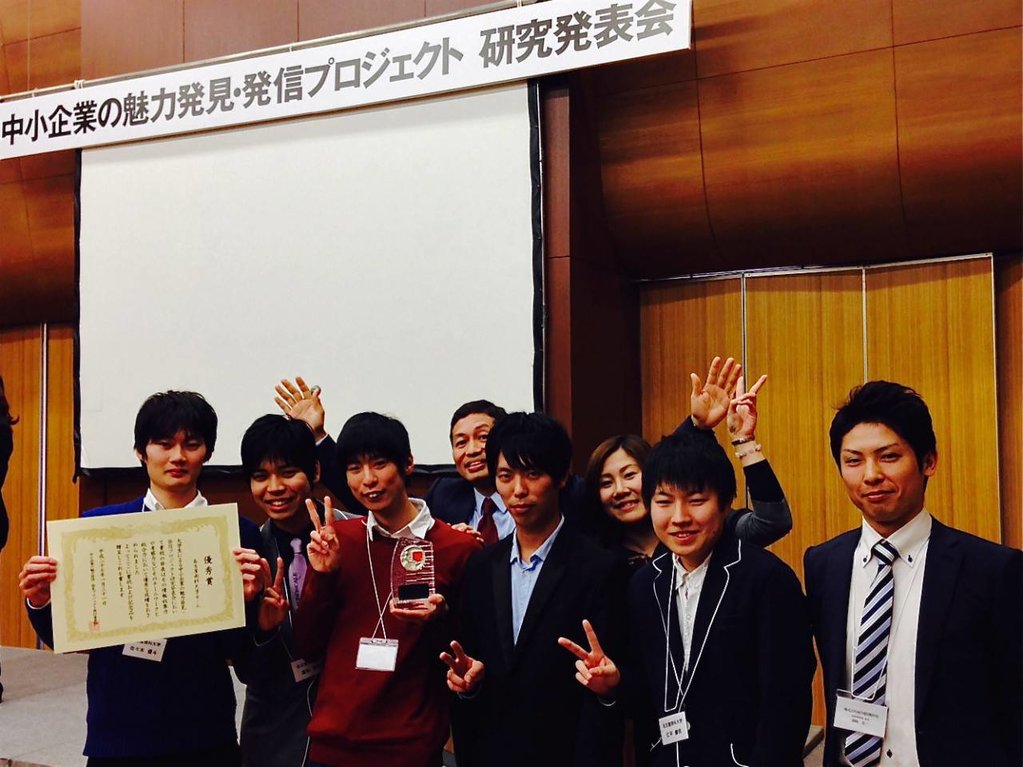 1月31日、中日新聞社において、全国中小企業団体中央会補助事業「平成26年度地域中小企業の人材確保・定着支援事業」の一環である「中小企業の魅力発見・発信プロジェクト 研究発表会」が開催され、本学の学生チームが『優秀賞』を受賞しました。