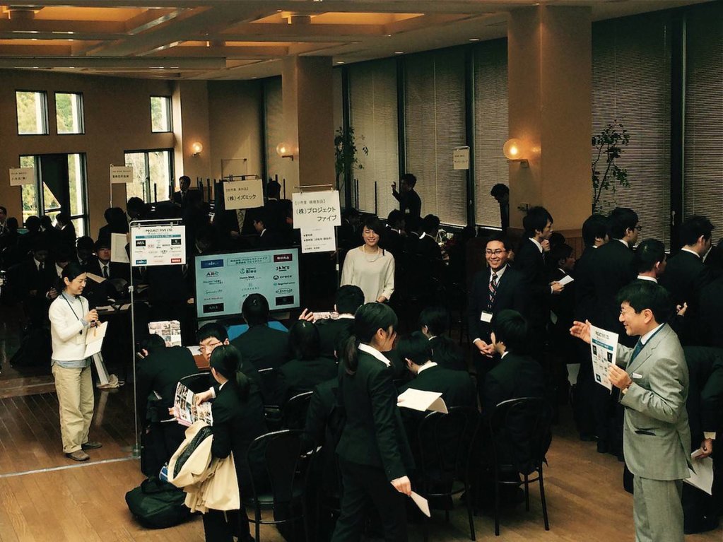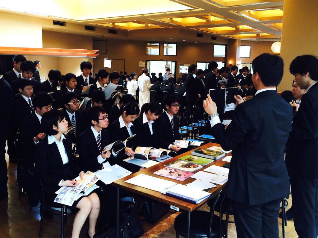 2016年卒業見込み学生を対象に日進キャンパスにおいて会社説明会がスタートしました。本日は卒業生が活躍する17社がブース形式で参加。200名を超える学生が来場し、会場内は大変なにぎわいとなりました。