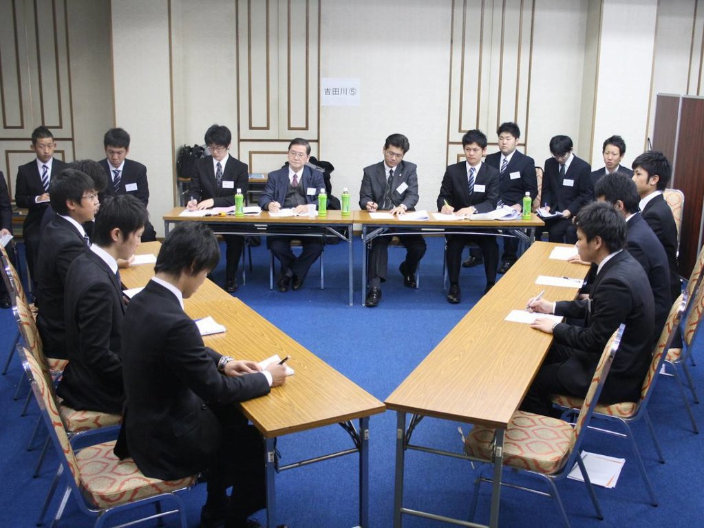 そして、当研修会の最大の特徴は、昨年この研修会に参加し、内定を獲得した4年次学生の有志(NSCS)が企画、運営を行うことにあります。先輩が後輩を直接指導する、名古屋商科大学の良き伝統が受け継がれています。その効果は、絶大であり、今春の卒業生のうち、就職研修会参加者の就職決定率は、99.1%(参加229名中、就職決定者227名)と全国平均の96.7%を上回っております。