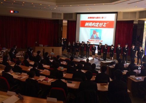 就職に強い大学・名古屋商科大学で就活生から圧倒的な人気を誇る、納得内定ゼミを開催しています。9月に続き、今回は115名の3年生が参加しています。納得内定ゼミとは、5日間の短期集中プログラムであり、キャリアカウンセリングや面接対策トレーニングを通じて、就職活動の心構え、自己分析、オリジナル履歴書の作成など就職活動に大切なことを徹底的に学びます。