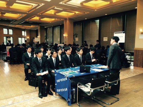 2017年卒業見込み学生を対象に日進キャンパスにおいて会社説明会がスタートしました。本日は卒業生が活躍する18社がブース形式で参加。200名を超える学生が来場し、会場内は大変なにぎわいとなりました。