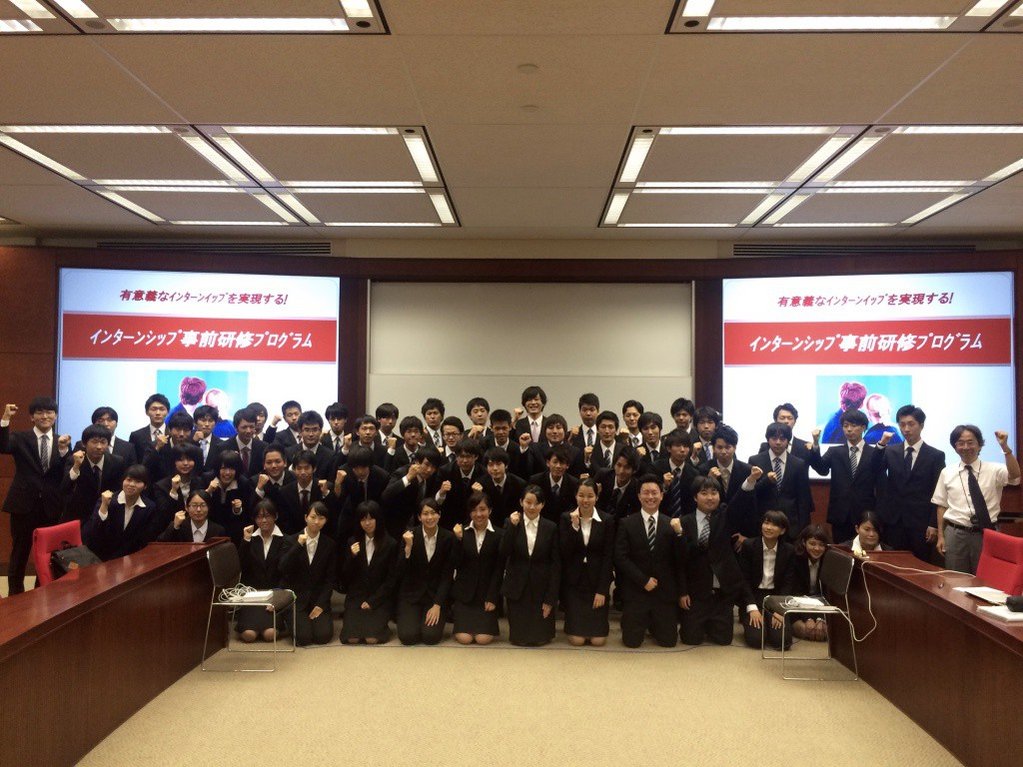 この夏に国内インターンシップに参加する学生を対象に事前研修を行ないました。今年のインターンシップは、38社の企業・団体と本学で提携を結び、名古屋キャンパスの都心型コース生5名を含めた64名の学生を派遣いたします。