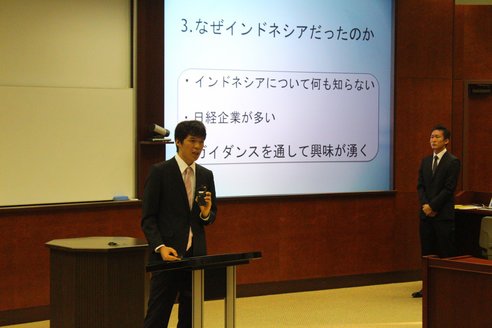 報告会では、インターンシップに参加した学生が、現地で体験したことや学んだことについて発表を行いました。ビジネスマナーや仕事に対する姿勢について考えさせられることも多く、社会人としての厳しさを痛感した学生や、文化や言葉が異なる人と働く中で、改めてコミュニケーションの重要性を感じとった学生もいました。インターンシップを通じて経験したことや、感じたことはそれぞれ違うと思いますが、この経験をこれからの学生生活や就職活動に生かしてほしいと思います。