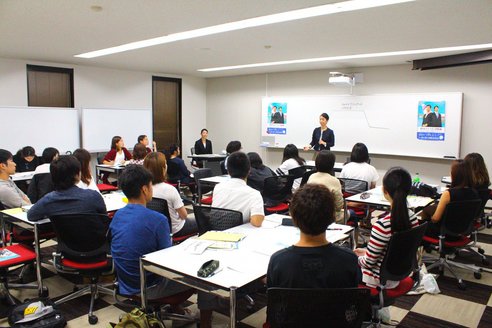 名古屋商科大学の日進キャンパスにて、ECCエアライン学院の講師の方をお招きして、エアライン業界セミナーを開催しました。セミナーでは、航空業界の基礎知識やそれぞれの職種の仕事内容、採用情報などについてお話いただきました。また今年度の採用試験の流れをふまえ、エントリーシートや面接試験を突破する為には、しっかりと自己分析を行うことが大切であることを教えていただきました。セミナーの後半では、今年、日本航空株式会社の客室乗務職に内定した本学の学生による体験談発表や実際の選考でも取り入れられているグループディスカッションを行いました。グループディスカッションでは、少人数のグループに分かれ、「旅行に行くなら、A:計画を立て予定通りに:B自由気ままに」というお題で話し合いを行い、講師の方からは、時間の管理の仕方や姿勢、グループとしての雰囲気作りなど採用担当者がチェックするポイントも教えていただきました。