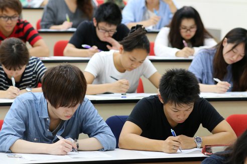 ガイダンスの後半では、SPI模擬試験を実施。就職試験においてSPI試験を避けて通ることはできません。面接試験に進み、自分自身をアピールする機会を得るためにもSPI試験対策は必要なのです。