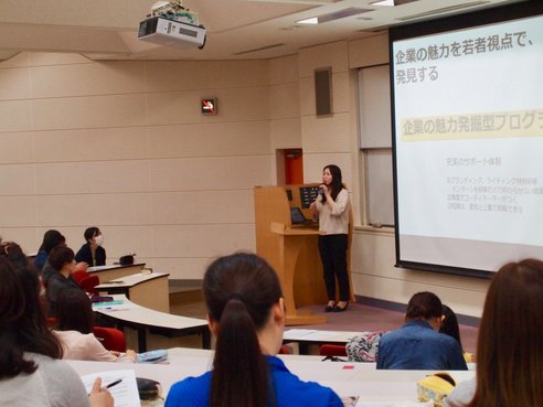 5月11日(木)、NPO法人 G-net 棚瀬さまにご来校いただき、国内インターンシップの説明会を開催しました。「大学4年間を本気にするチャレンジ」をテーマとして行われた今回の国内インターンシップ説明会では、学年を問わず多数の学生が参加し、熱心に話を聞く姿勢に学生の意識の高さが見られました。