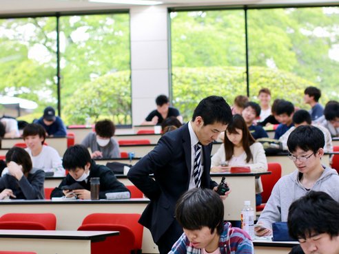 日進/長久手キャンパスにて、3年生の経済学部、経営学部、商学部を対象にしたキャリアガイダンスが開催されました。企業の規模に関わらず、新卒採用で多くの企業が適性検査を実施しています。今回はその中でも特に多く使用されているSPIを取り上げてその内容に触れました。学生はガイダンス中にスマートフォンを使用して、実際にリクルートが運営するSPIを受験し、その結果を元にどのような準備ができるのかについて学びました。