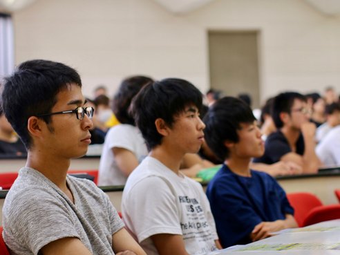 名商大は就職に強い大学として認知されていますが、その理由の一つに「納得内定ゼミ」の実施があります。学生が売り手市場と言われている昨今において、内定を得ること自体はそれほど難しくはありません。しかし本学のキャリアサポートはただ内定を得るだけでは満足しません。学生が第一志望群の企業の内定を得ること、つまり納得内定を得ることを目標に日々サポートを行っています。今回ご紹介する「納得内定ゼミ」は超大手企業を始めとする優良企業への内定を目指す学生のためのセミナーです。本学の3年生で希望すればどなたでも参加が可能です。日進/長久手キャンパスにて、指導員でキャリアカウンセラーの国家資格を持つ石井邦博先生を中心として「納得内定ゼミ」の説明会が行われ、実際にセミナーを受けて優良企業に内定をもらった4年生のお話も聞くことができました。