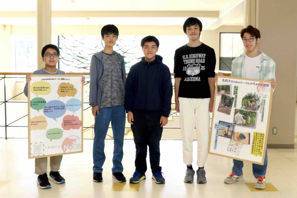 私たちSDGsサークルは毎週月曜日と木曜日に活動しています。昨年の大きな出来事としては、二年目となった学園祭で系列校の名古屋国際高等学校との高大連携出展や、外部から企業を招いて出店を行いました。