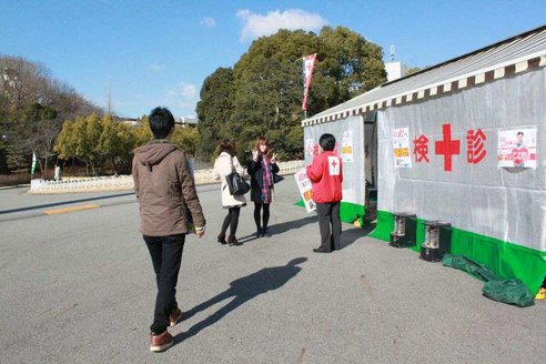 平成24年度後期の活動は平成25年1月10日(木)10:30~17:30、50周年記念ポール付近にて行いました。寒い中、学生はもちろん、教員、スタッフによって100名近い多くのご協力を得ることができました。