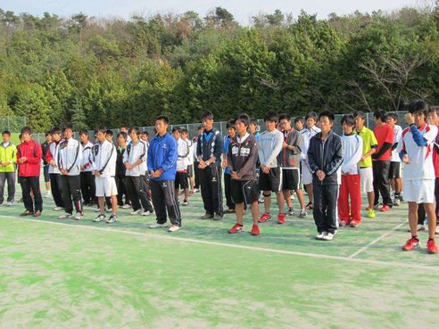 第2回NUCB杯争奪テニス大会開催 第2回 NUCB杯争奪テニス大会(男子団体の部)を3月16日(土)に開催しました。この大会には、愛知県下の公立高校8校が参加。2ブロックの4校リーグ戦(インターハイ団体形式)および各ブロック同順位校による順位決定戦を行い、熱戦を繰り広げて、昭和高校が見事に優勝を果たしました。 試合結果は、以下のとおりです。 優勝:昭和高校 2位:長久手高校 3位:大府高校 優勝した昭和高校の選手および監督 フォアハンドを打つ昭和高校の選手 サーブを打つ長久手高校の選手 閉会式の様子