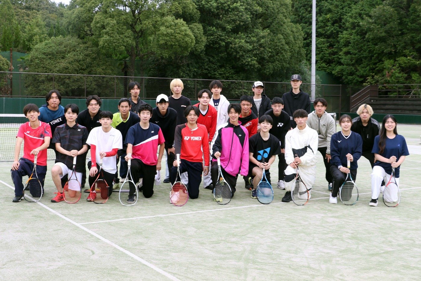 ソフトテニス部は、男子25名・女子3名の計28名で活動しており、和やかでアットホームな雰囲気が特長のクラブです。元気いっぱいの部員が集まり、日々コートで汗を流しながら技術向上に励んでいます。初心者でも安心して参加できる環境が整っており、経験者が基礎から丁寧に指導するため、入部後すぐにプレーの楽しさを実感できます。練習には真剣に取り組みつつ、仲間とのコミュニケーションも大切にし、試合では勝利を目指して団結しています。オフの日には交流の機会も多く、学年を超えたつながりが生まれるのも魅力の一つです。仲間との絆を深めながら、充実した大学生活を送ることができる環境です。