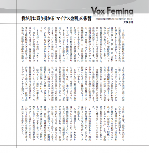 本学の大槻奈那教授が時事通信社から発行されている、金融・財政関係者向けの専門情報誌「金融財政ビジネス(2016年2月22日号)」にコラムを掲載しました。