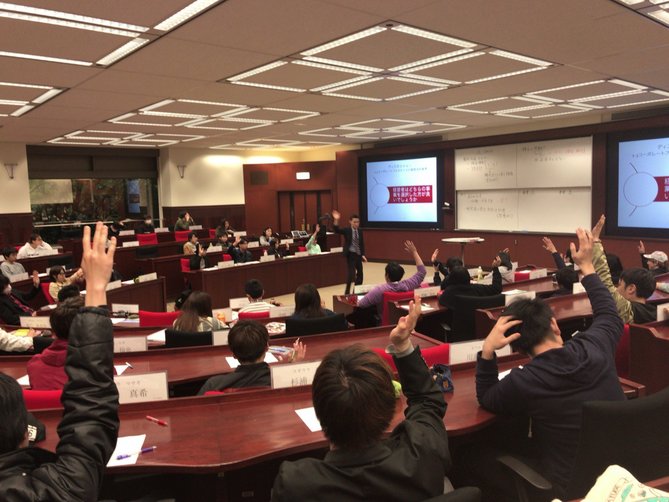 本講義では、少人数でグループ・ディスカッションを行うことにより、教室単位でディスカッションを行う前に、個人の意見の質を上げています。そのため一つひとつ、深い議論が行われていました。