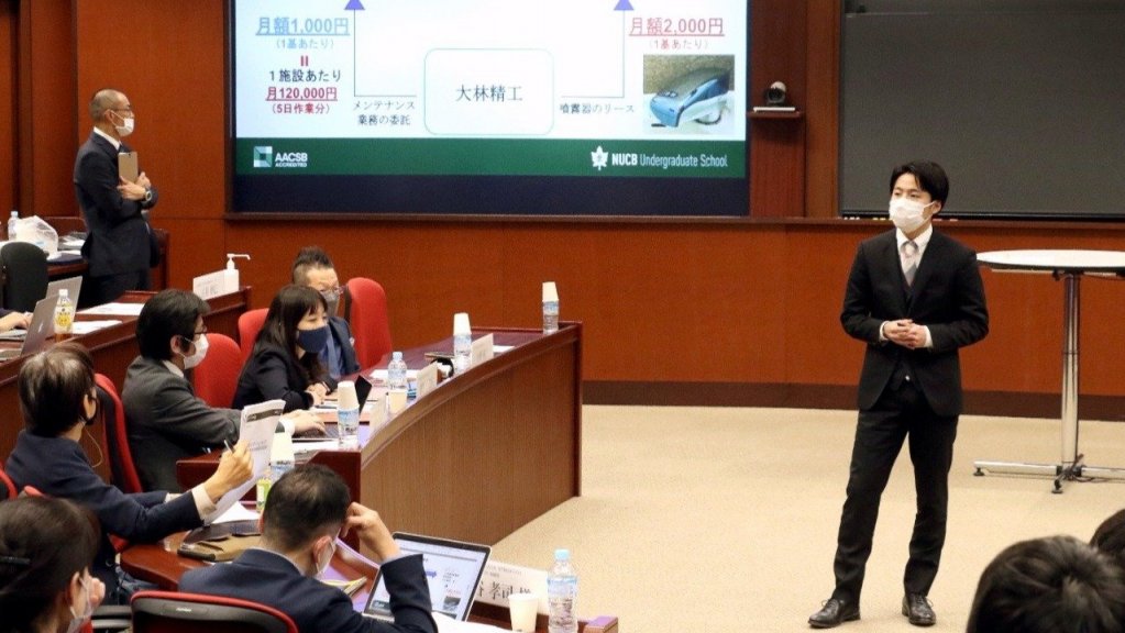 12月8日(水)日進キャンパスにおいて、第1回ビジネスプランコンテストの最終審査を開催しました。瀬戸信用金庫 会長 水野和郎氏、日進市長 近藤裕貴氏、オイシックス・ラ・大地 執行役員COCO 奥谷孝司氏、本学経営大学院 研究科長 北原康富氏と各界より豪華審査員をお迎えし、厳粛な空気の中行われた今回。台湾からZoomで参加したチームを含む全8チームの熱のこもったプレゼンテーションが繰り広げられ、審査員だけでなく、聴講学生からも多くの質問が飛び交い大いに盛り上がりました。最終審査を勝ち抜いた4チームには、審査員より激励とともに以下の賞が贈られました。コンテストに出場した学生たちが、今回の経験を糧に、自慢のビジネスプランを引っ提げ世界へ羽ばたくことを期待しています。