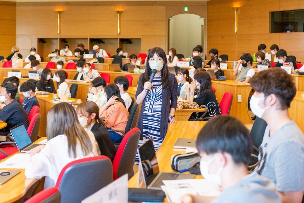 「コミュニケーションの理論と実践」では、企業の広報動画を制作する上でかかせない、構造化インタービューや半構造化インタビューなどのヒアリングの技法や、飲料水のパッケージリニューアルを例に、企業のマーケティング施策に対して消費者がどのような行動を起こすのかなどを学びました。「コミュニケーションの理論と実践」の授業での学びが、同時期に開講されている「フィールド実践」という別の授業での広報動画制作に繋がっていきます。科目間の連携を図り、学生の学びを最大化していきます。広報動画の完成発表会が楽しみです。