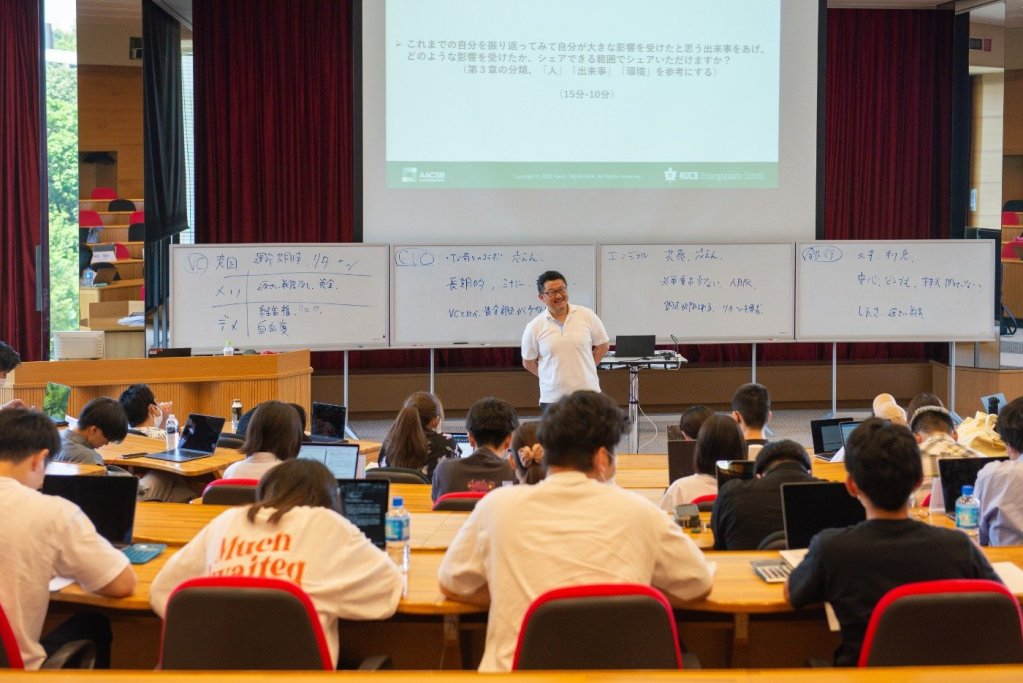 自分の感情、長所、短所、衝動を深く理解する、セルフ・アウェアネス。人々の趣味や志向が多様化し、何が正しい選択かが難しい現代において、「自分は何者なのか?」「自分は何がやりたいのか?」と自分に向き合うことは、新規事業を立ち上げる上で必要になります。授業の中では、一つの事例として只熊先生の歩まれた人生をビジュアル化し、その時どんなことを考え、どう乗り越えたのかを、包み隠さず伝えていました。熱く語る只熊先生の言葉を、学生たちは聞き逃すまいと真剣に耳を傾けていました。