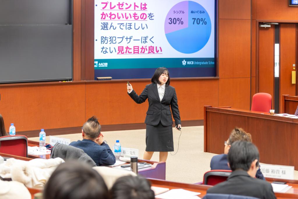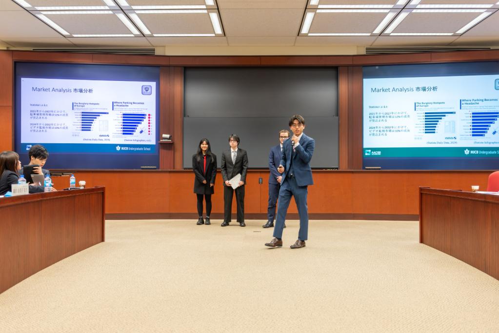最優秀賞には、Global BBA 2年のチームの『SentrySpace』が選ばれました。審査員の講評では、本学大学院教授の北原先生から「ビジネスを立ち上げ、維持するために最も重要な要素は2つあります。1つは、自らのビジネスが人々に受け入れられるように『柔軟性』をもつこと。もう1つは自分のアイディアに価値があるという『確信』をもつことであり、最終審査の全チームのプレゼンテーションからは、自らのアイディアに強い『確信』を持っていると感じた。」と参加学生を激励しました。
