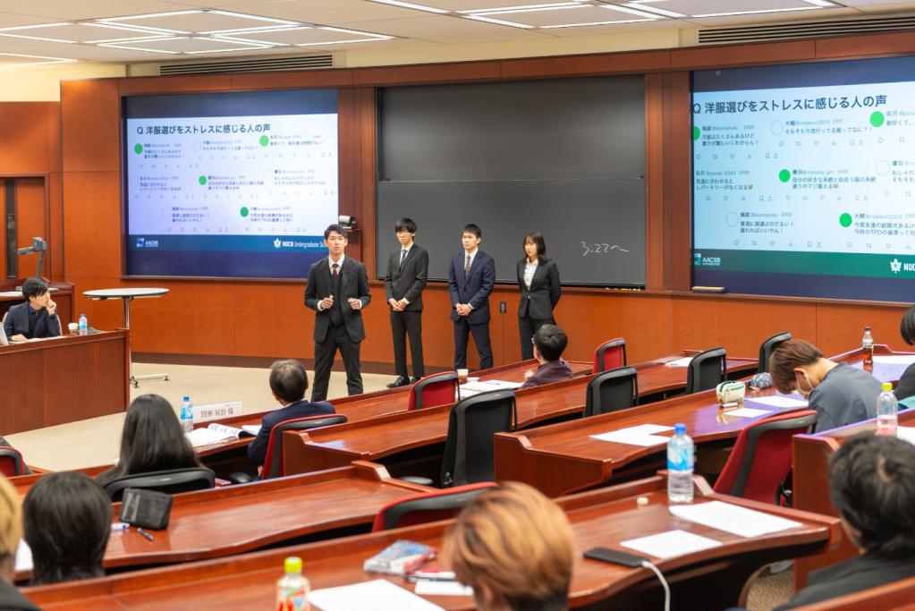 全8チームの熱意あふれるプレゼンテーションが繰り広げられました。最終審査に進んだ8チームのうち2チームは1年生の学生であり、聴講学生には大変刺激になったようでした。聴講学生は発表されたビジネスプランをより良いものにするために意欲的に質問し、審査員も実際のビジネスとして形になるかどうかという視点で意見を述べ、大いに盛り上がりました。プレゼンターである学生は質問に真摯に応えつつ、審査員のアドバイスからプランを実現するために必要な視点とアクションを学びました。