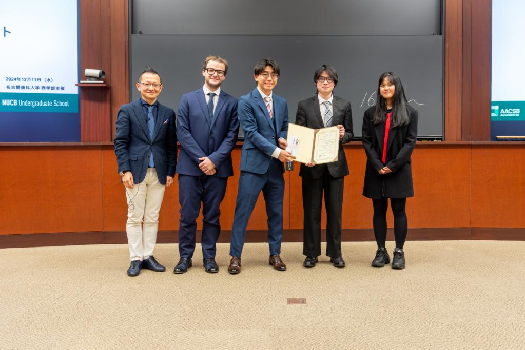 本コンテストは、名古屋商科大学商学部が主催し、名古屋商科大学同窓会と名古屋商科大学後援会、株式会社日本経営の協賛を受けて実施するビジネスプランコンテストです。4回目となった今回、総勢30組の応募から1次審査が行われ、8組の最終審査出場者を決定。最終審査のプレゼンテーションにより各賞が選出されました。商学部では、「ケースメソッド《討議》」と「フィールドメソッド《体験》」を教育の両輪として、インテンシブかつ相乗的に組み合わせて実践することで、新しい学びを実現し、産業界や地域社会の要請に対応するリーダーを養成します。本コンテストはこの取り組みにおける「フィールドで事業を構想する」に当たります。