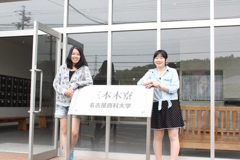 学生寮「三本木寮」を訪問しました。今回、お部屋の扉を開けてくれたのは2年生『原さん』です。入学から仲良しの遠藤さんも参加して、快くお部屋にあがらせていただいての撮影会になりました。