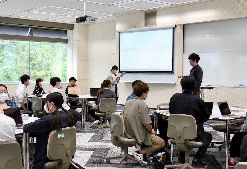 本学では2年生から各専門知識を持った教員のセミナーに所属し、3年間かけて卒業論文執筆の指導を受けます。北村貴准教授のセミナーでは主に「政策による問題解決」をテーマに、学生1人1人が興味のある政策課題に関して研究を進めます。今回は2年生のセミナー生による各自の卒業論文テーマ発表の様子をお伝えします。