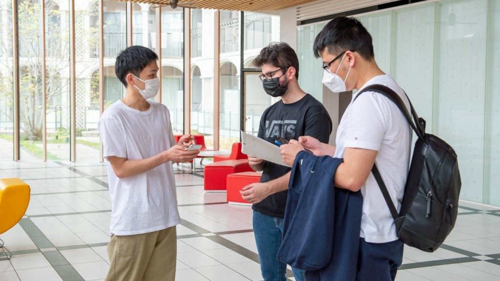 The language exchange program pairs Japanese and international students on campus to exchange language and culture. Anyone can participate in the program (free of charge), regardless of their faculty or grade. The languages taught are not only limited to English and Japanese but also French, German, Spanish, Chinese, Portuguese, etc. In addition to improving language skills, students can cultivate a sense of internationalism and diverse values. International and Japanese students are often seen studying together and enjoying exchanges at the Central Information Center (library), cafeteria (Sora Cafe pictured above), lounges, and other locations on campus.