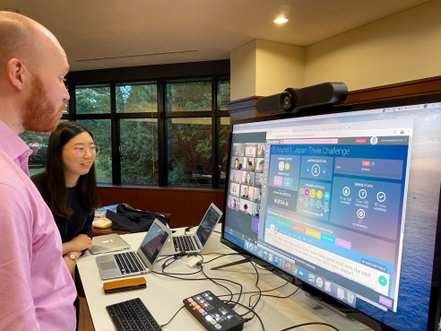 Moving onto Friday, just before the class starts in the following week, administrators and students got together during an Online Welcome Party. Through breakout rooms and icebreaker questions, everyone got to know each other more than during the Orientation before heading out for more fun. The Japan trivia quiz test everyone's knowledge of Japan and NUCB Undergraduate School, with the winner clinching an NUCB hoodie! The last game was janken (rock-paper-scissors in Japanese) where we had 2 winners, each receiving an NUCB t-shirt!
