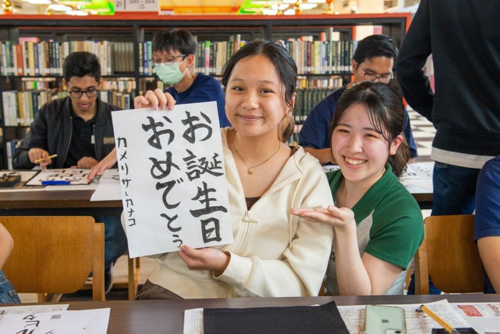 After the event, the international students were happy to receive their calligraphy pieces as souvenirs and took many of them back to their homes as cherished mementos. The event created an atmosphere filled with smiles as students embraced the rich tradition of Japanese culture.