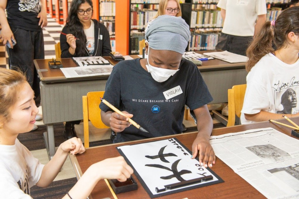 At the beginning of the event, participants were introduced to the fundamentals of calligraphy. The Japanese students, who served as teachers, seemed delighted to share their knowledge of calligraphy while reminiscing about their own experiences with the ancient art form.